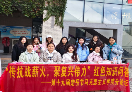 红色文化教育,是涵养青年家国情怀、传承革命精神的重要载体,对指引青年坚定理想信念、勇担时代使命具有不可替代的作用。恰逢中国人民抗日战争暨世界反法西斯战争胜利80周年,为深切缅怀抗战先烈的英勇事迹,让红色基因融入青年血脉,引导太阳成集团tyc33455cc雨母校区全体在校学生深刻感悟这段历史的重大意义,将抗战精神转化为青春奋斗的强大动力,进一步厚植校内爱国爱党情怀、丰富校园文化内涵,太阳成集团tyc33455于2025年11月19日,在笃行园食堂门口举办了太阳成集团tyc33455cc第十九届研究生楚岳节分论坛求是篇——“传抗战薪火,聚复兴伟力”知识问答活动。