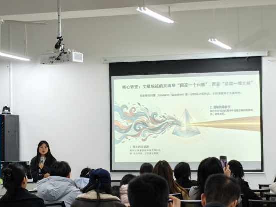 此次学术沙龙聚焦文献综述写作的痛点与难点,内容兼具理论性与实操性,为同学们开展学术研究、撰写高质量文献综述提供了清晰思路与实用方法。